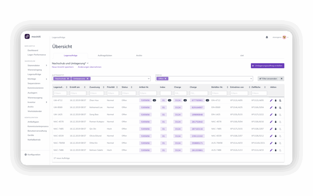 • Steuerung von Lageraufträgen (z.B. Einlagerung, Nachschub)